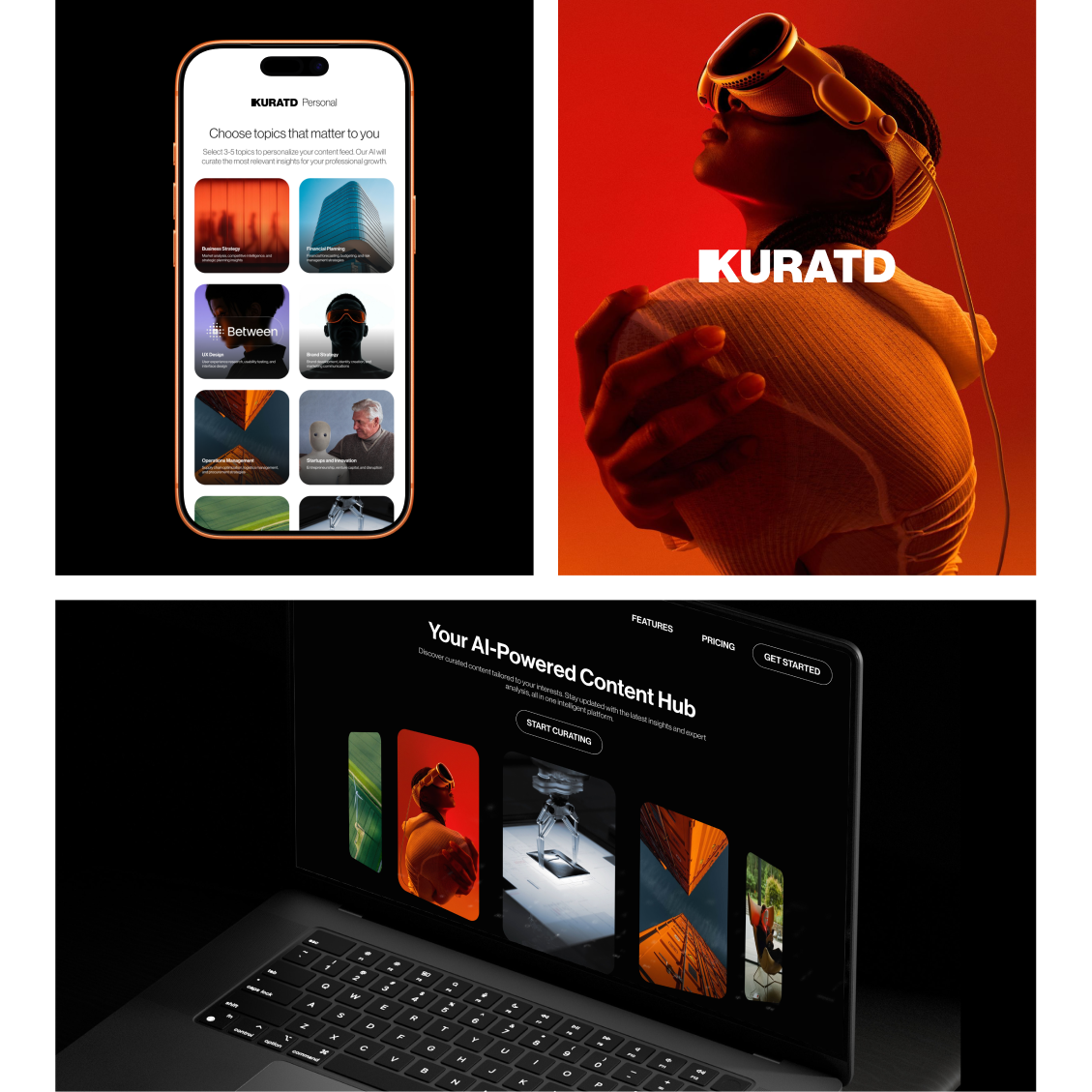 Kuratd is an AI-driven platform that curates insights, content, and conversations into a single, streamlined experience. The challenge was to create a brand that reflects both intelligence and clarity — balancing advanced technology with a sense of structure and control.